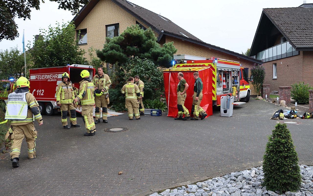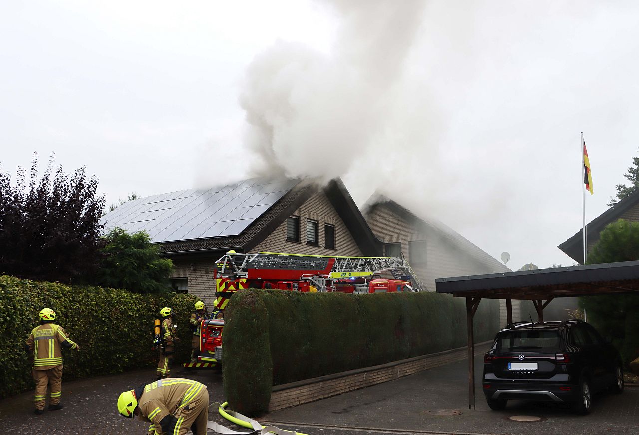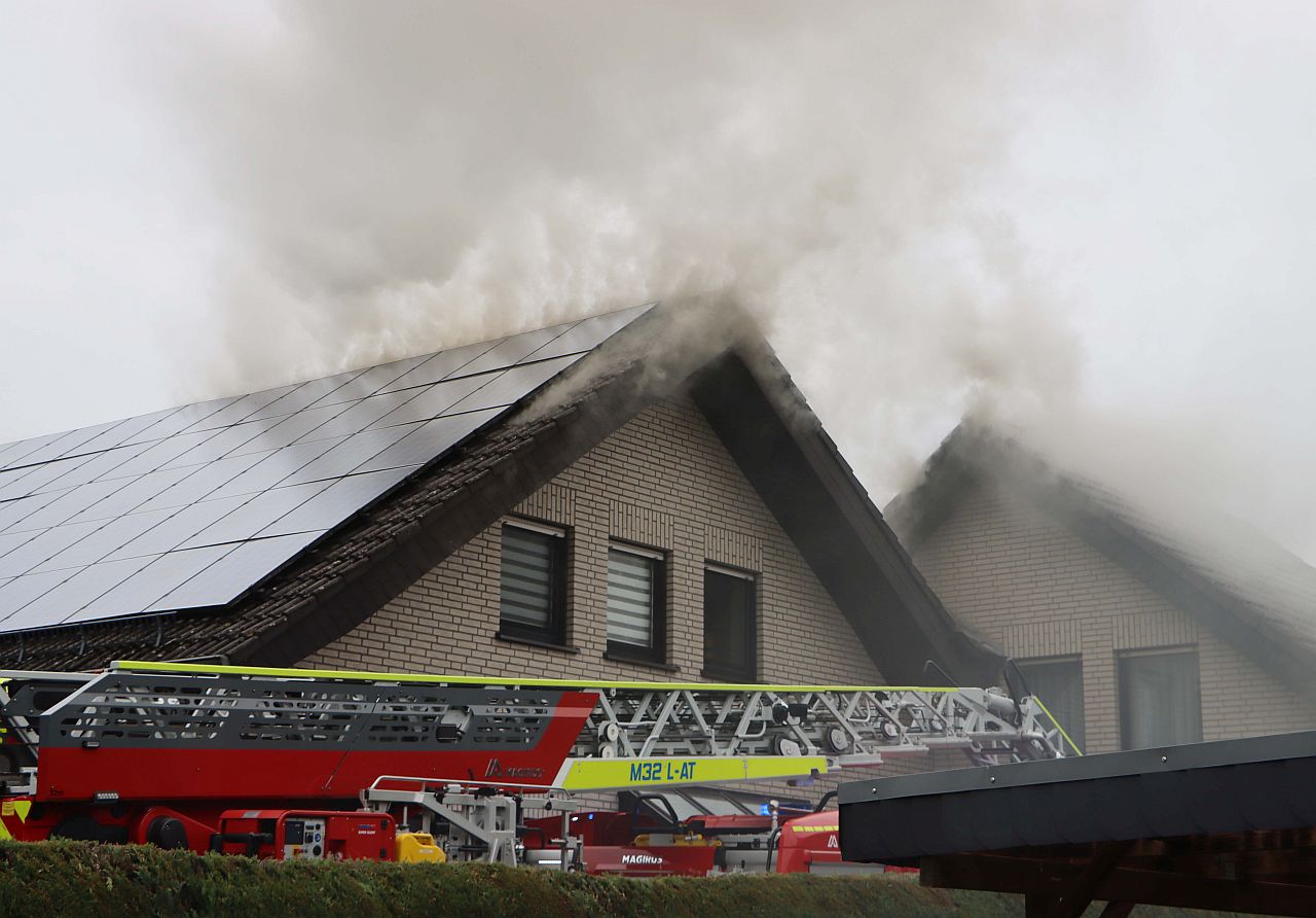 Rauch über Sudhagen: Garagenbrand droht auf Wohnhaus überzuspringen. Schwieriger Einsatz für 60 Einsatzkräfte der Feuerwehr.