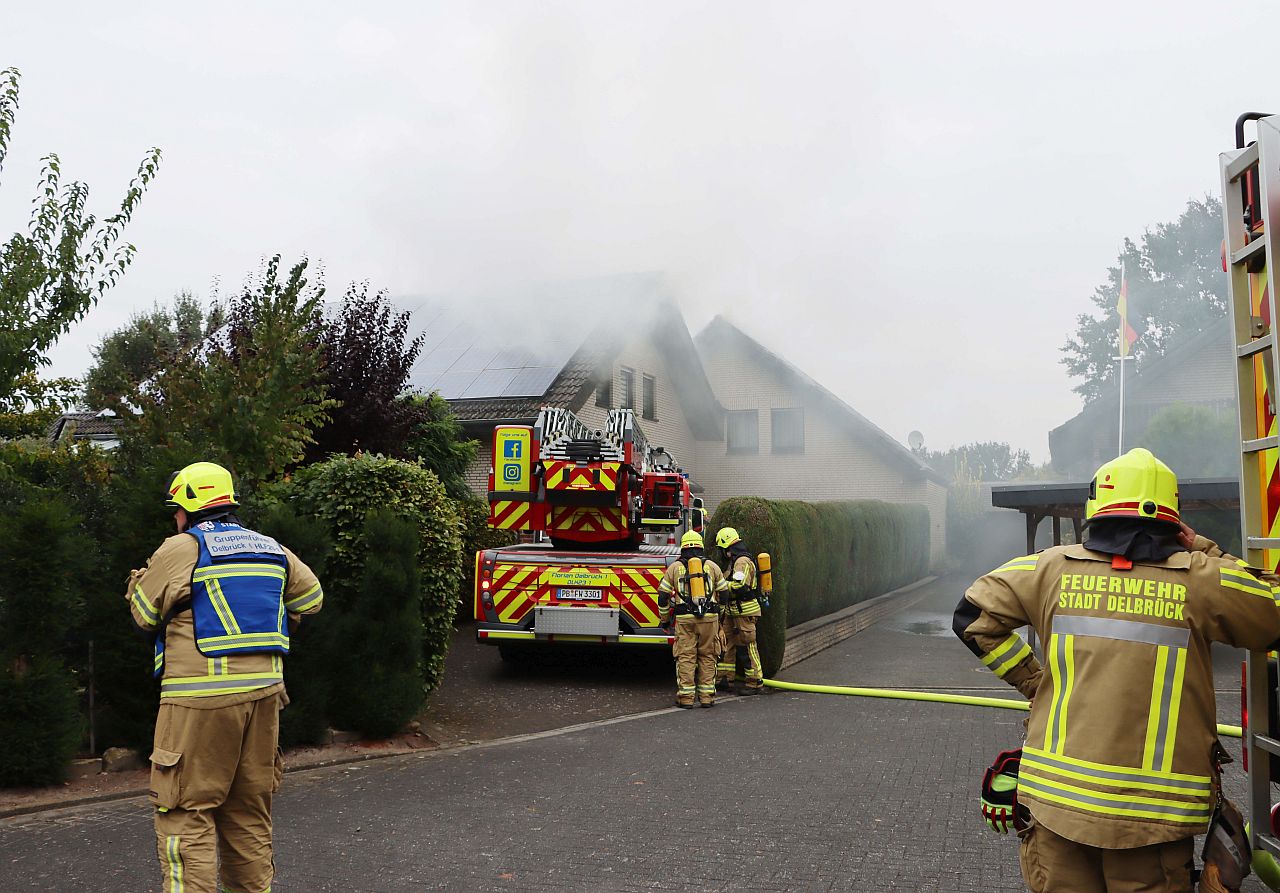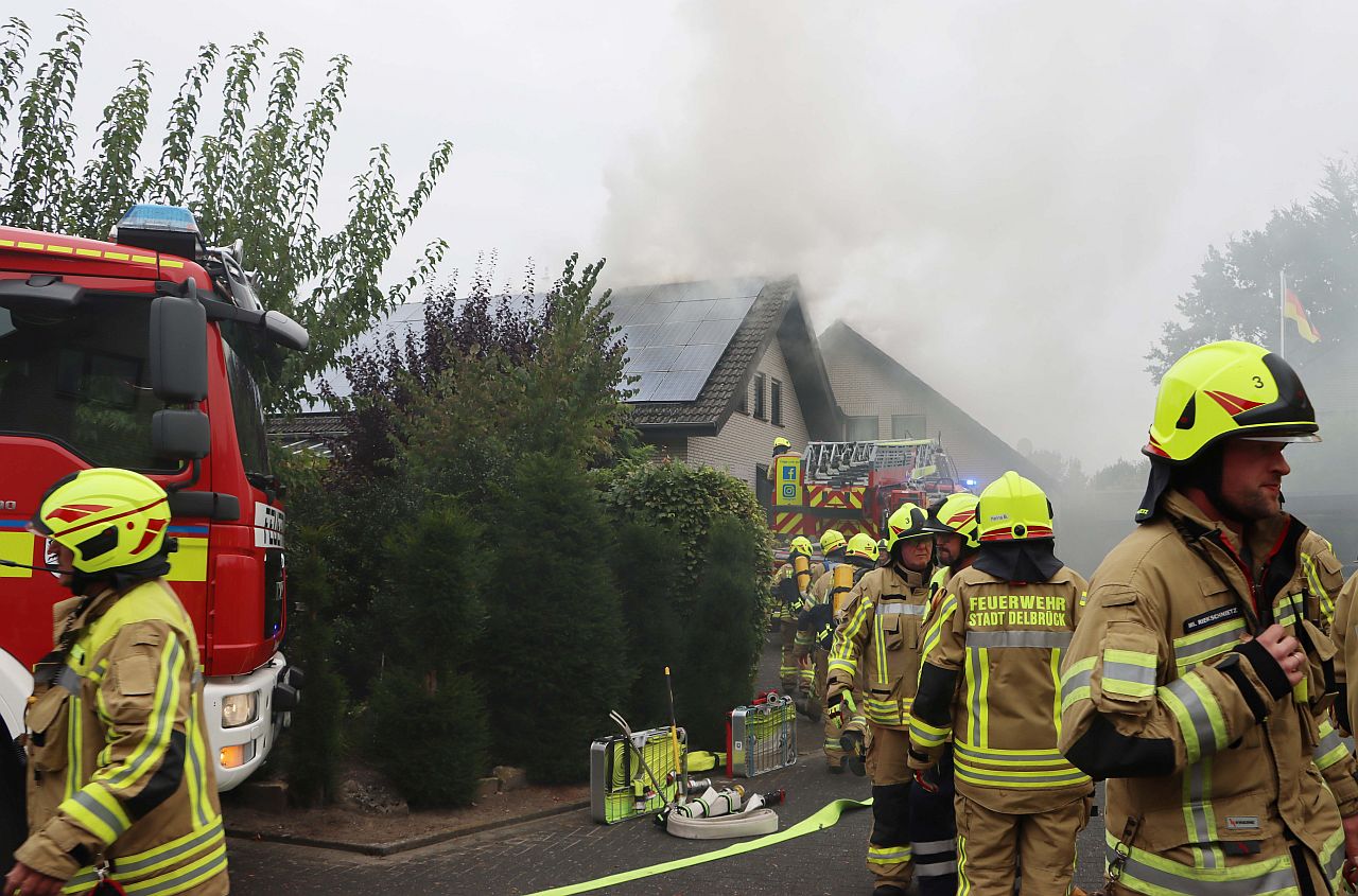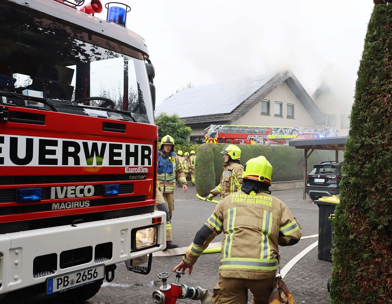 Rauch über Sudhagen: Garagenbrand droht auf Wohnhaus überzuspringen. Schwieriger Einsatz für 60 Einsatzkräfte der Feuerwehr.