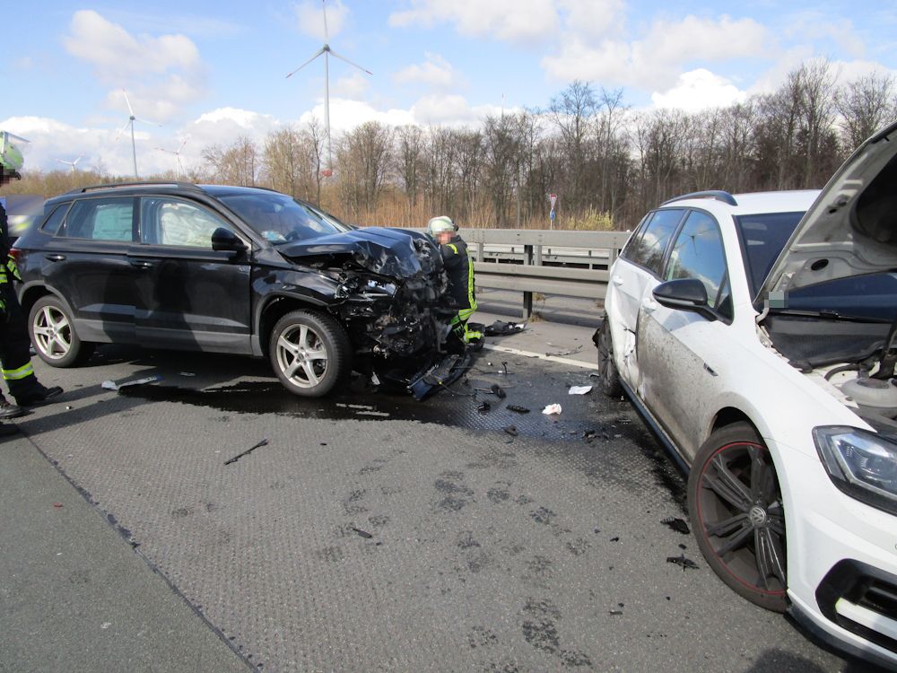 Bad Wünnenberg. Hier waren auf der Fahrbahn in Fahrtrichtung Kassel zwei PKW kollidiert. Dabei waren zwei Personen verletzt worden. Sie wurden notärztlich erstversorgt und ins Krankenhaus transportiert. Die Feuerwehr sicherte die Einsatzstelle, unterstützte den Rettungsdienst bei der Verletztenversorgung, klemmte die Fahrzeugbatterien ab und nahm auslaufende Betriebsstoffe auf.