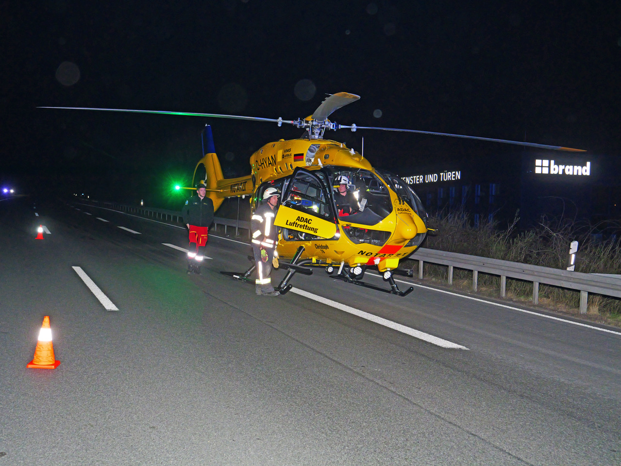 Gegen 20.15 Uhr landete auch der nachtflugtaugliche Rettungshubschrauber „Christoph Westfalen“ aus Greven bei Münster südlich der Unfallstelle direkt auf der Autobahn. Ein weiterer Hubschrauber wurde zwar angefragt, konnte jedoch im Standort bleiben. Durch den Rettungseinsatz, die Unfallaufnahme und die Reinigung der Fahrspuren blieb die Richtungsfahrbahn Brilon bis gegen 3.40 Uhr am Sonntag gesperrt. Dadurch kam es zu einem stundenlangen Stau auf der Autobahn. Eine Einsatzeinheit des Deutschen Roten Kreuzes aus Paderborn stand in unmittelbarer Nähe der Unfallstelle am Rande des Gewerbegebietes Alfen in Bereitschaft. Insgesamt waren 78 Helfer mit 30 Fahrzeugen im Einsatz.