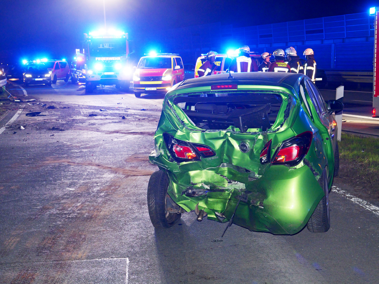 Insgesamt vier Notärzte und acht Rettungswagen aus der Region rückten auf die Autobahn aus, berichtet Feuerwehr-Einsatzleiter Wolfgang Puls, stellvertretender Leiter der Feuerwehr Borchen, die mit rund 40 Feuerwehrleuten der Löschzüge Kirch- und Nordborchen die Unfallstelle absicherten, Rettungsarbeiten unterstützten, das Batteriemangement sicherstellten und ausgelaufene Betriebsstoffe abstreuten.