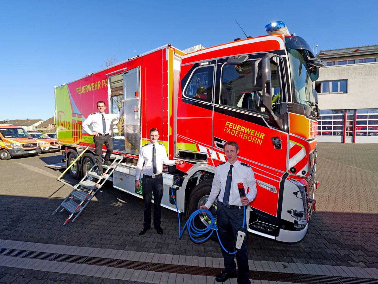 Als erste Feuerwehr in Ostwestfalen-Lippe hat die Feuerwehr Paderborn einen vollelektrischen Lastkraftwagen in Dienst gestellt. Das 713.000 Euro teure Fahrzeug ist ein Gerätewagen Logistik und wird eingesetzt, um den logistischen Nachschub an Einsatzstellen sicherzustellen und ersetzt zwei mehr als 20 Jahre alte Wechselladerfahrzeuge.