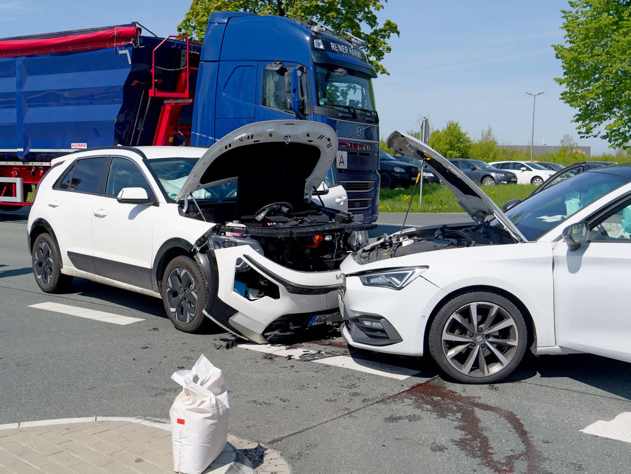 Zur Unfallzeit wollte eine Autofahrerin aus dem Landkreis Göttingen mit ihrem Seat Leon von der Bürener Straße nach links auf die Zufahrt zur B480 abbiegen. Dabei übersah sie offenbar einen Kia Niro mit Aachener Zulassung, dessen Fahrer auf der Bürener Straße Richtung Haaren unterwegs war.