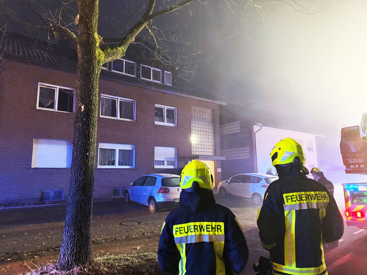 Bei einem Brand in einem Mehrparteienhaus an der Detmolder Straße im Hövelhofer Ortsteil Riege musste die Feuerwehr am Freitagmorgen vier Personen über die Drehleiter und Steckleitern retten. Sie kamen bei dem Feuer nicht zu Schaden. Auslöser war ein Brand in einem Stromverteilerkasten im Treppenhaus, der zu einer kompletten Verrauchung des Fluchtweges für die oberen Etagen führte. Insgesamt hielten sich fünf Bewohner in dem Haus auf.