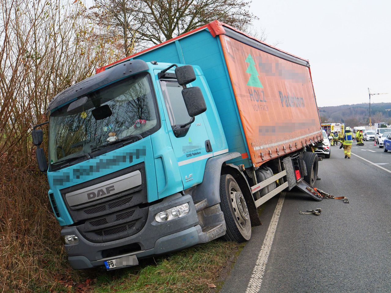 Altenbeken Buke. Aus ungeklärter Ursache geriet eine 57Jahre alte Autofahrerin aus dem Kreis Höxter kurz vor der Avia-Tankstelle und der dortigen Brückenbaustelle auf der Fahrt in Richtung Höxter nach links in den Gegenverkehr. Dort kollidierte der Fiat 500 Abarth seitlich mit einem entgegenkommenden, unbeladenen Lastwagen eines Paderborner Unternehmens. Mit dem linken Vorderrad prallte der Fiat gegen die Hinterachse des Lastwagens, der durch die Wucht des Anpralls nach rechts in den Straßengraben rutschte.