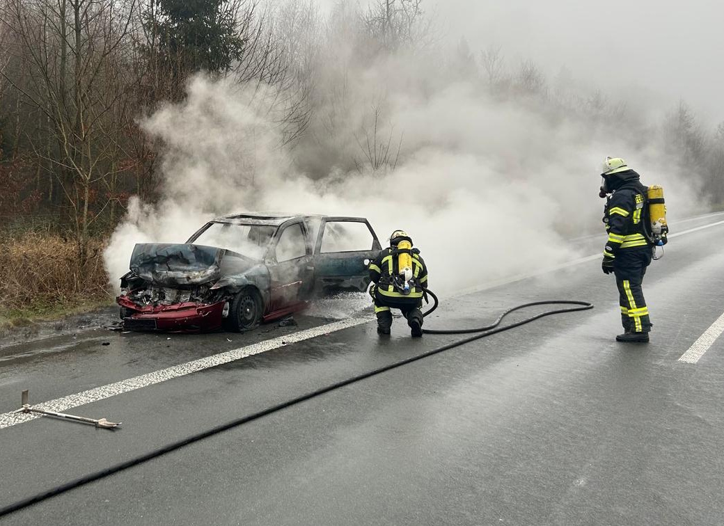 Bad Wünnenberg-Haaren. Am Montag, 29. Dezember, kam es auf der A33, Richtungsfahrbahn Osnabrück, zwischen dem, Autobahnkreuz Bad Wünnenberg-Haaren und und der Anschlussstelle Borchen-Etteln zu einem Auffahrunfall, bei dem auf der linken Fahrspur ein Opel Vectra auf einen vorausfahrenden Wagen prallte und in Brand geriet. Drei Personen wurden dabei verletzt.