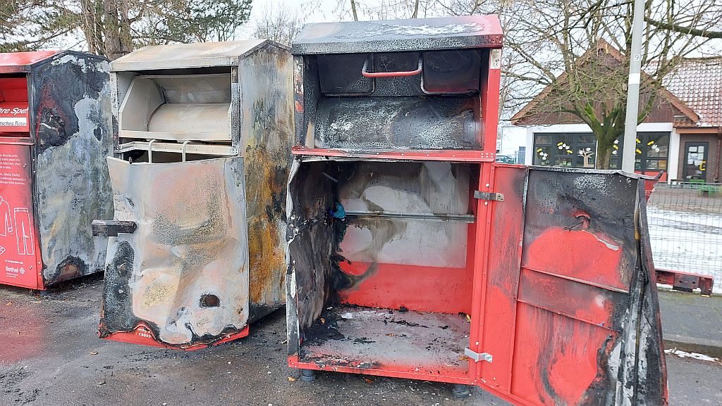 In Westenholz setzten Unbekannte am Donnerstag, 1. Januar, gegen 0.05 Uhr an der Anton-Pieper-Straße zwei Altkleidercontainer in Brand Auch dort löschte die Feuerwehr den Brand. Der Sachschaden liegt bei 1.000 Euro.
