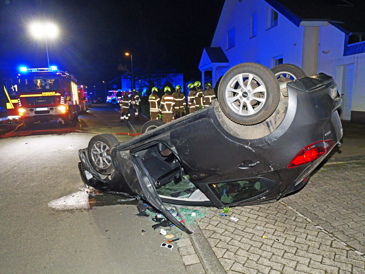 Auf dem Dach landete in der Nacht zu Samstag ein Mazda 2 bei einem Verkehrsunfall im Paderborner Stadtteil Elsen. Dabei wurde der 53 Jahre alte Fahrer verletzt. Der Unfall ereignete sich gegen 3.40 Uhr in der Letterhausstraße in einem ruhigen Wohngebiet.