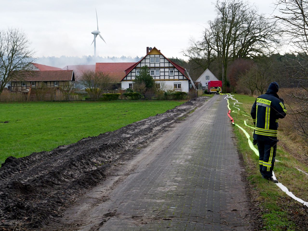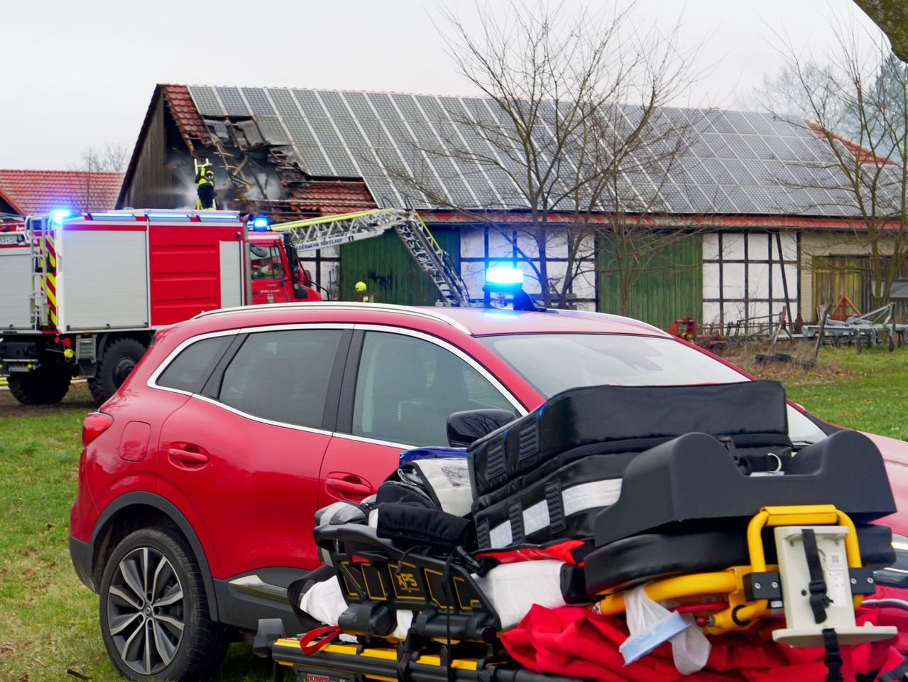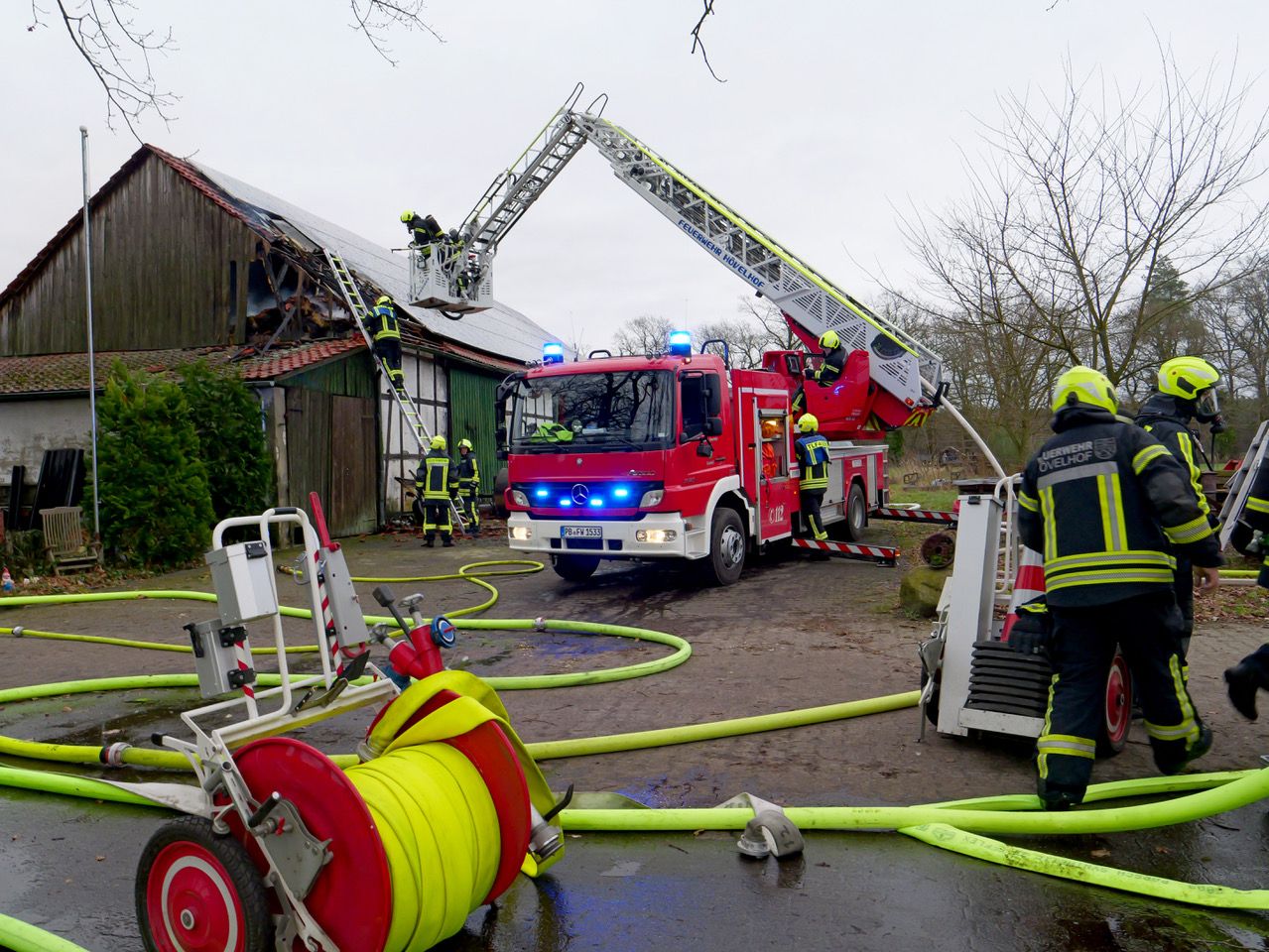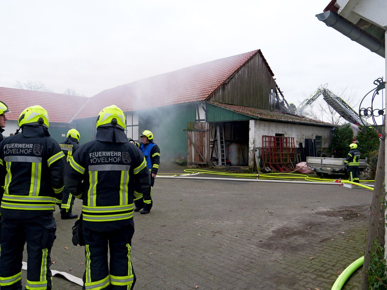 Am Mittag des Neujahrstages musste die Feuerwehr Hövelhof nach Hövelriege ausrücken. Dort stand der Dachstuhl einer Scheune auf einem landwirtschaftlichen Betrieb an der Straße Neue Riege in Flammen. Durch das Feuer wurden Heuvorräte vernichtet und eine großflächige Photovoltaik (PV)-Anlage in Teilen zerstört.