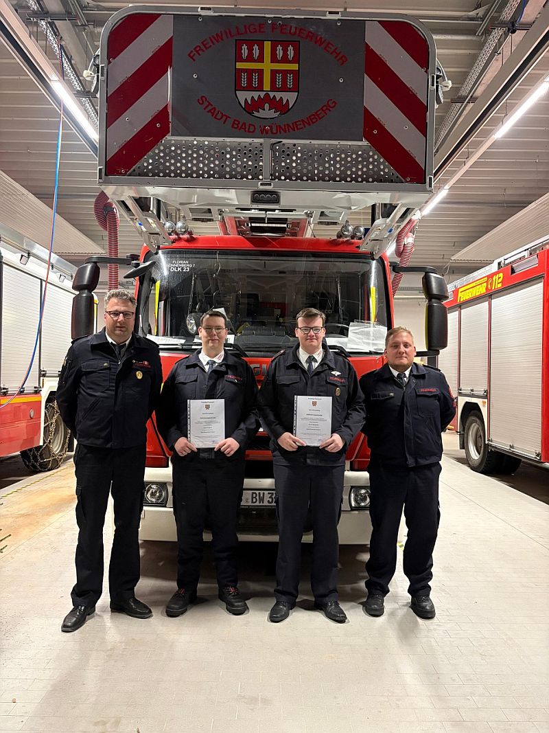 Befördert wurden im Rahmen der Versammlung Kevin Bödefeld und Luka Wagner zu Oberfeuerwehrmännern.Derzeit ist der Löschzug Bad Wünnenberg 107 Mitglieder stark. Davon leisten 44 Feuerwehrleute in der Einsatzabteilung Dienst, 20 Kameraden bilden die Ehrenabteilung und 26 junge Feuerwehrleute engagieren sich in der Jugendfeuerwehr.Die Einsatzentschädigung der aktiven Feuerwehrleute wird komplett dem Förderverein des Löschzuges Bad Wünnenberg gespendet. Der Förderverein unter der Leitung von Reimund Lesen und Lukas Nölting sponserten daraus im letzten Jahr Bekleidung wie Hemden, Pullover und Poloshirts, die nicht zur von der Stadt finanzierten Einsatzbekleidung gehören.