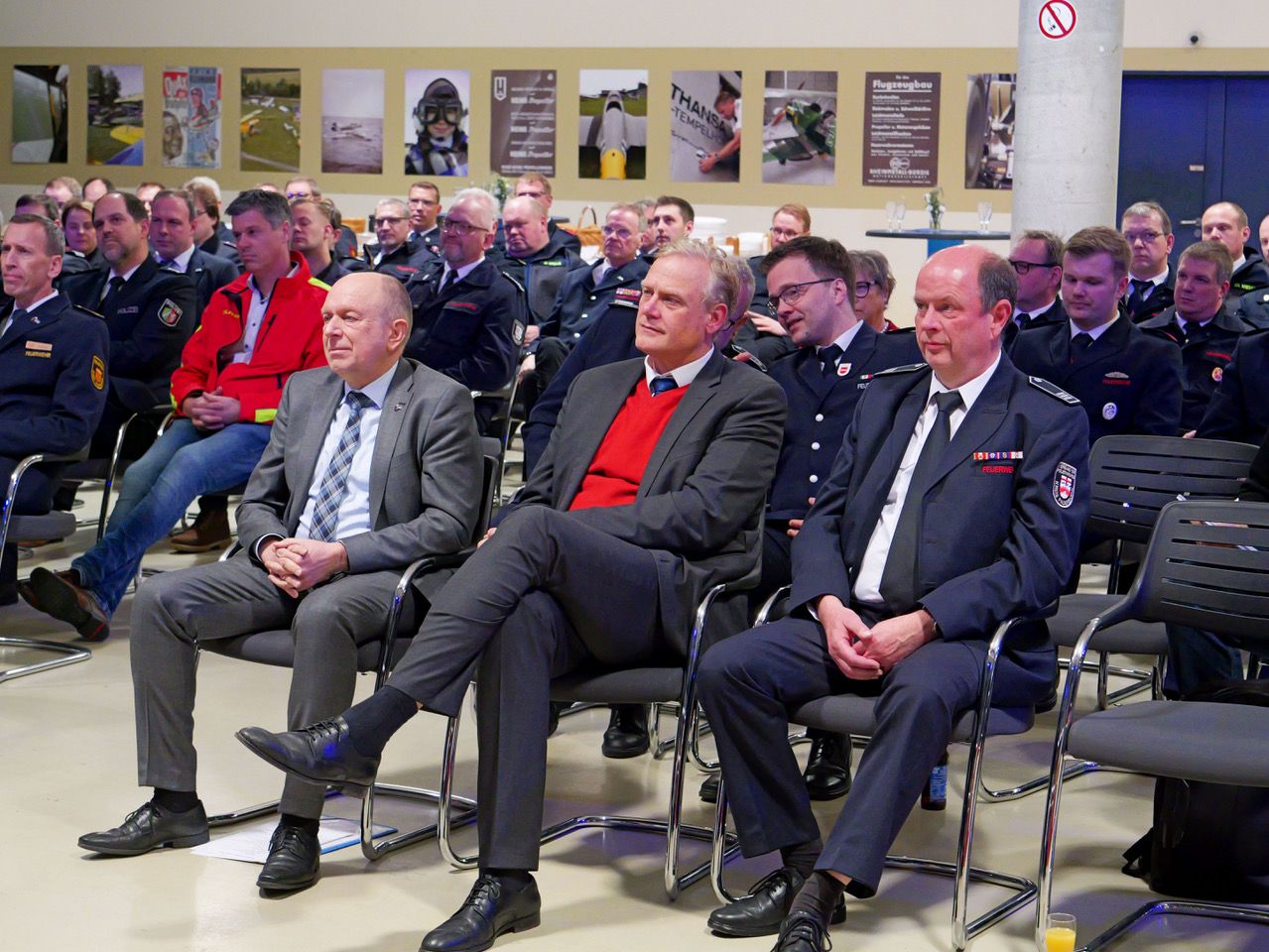 Die Brandbekämpfung macht nur noch einen Teil der Arbeit der 3.215 aktiven Feuerwehrleute im Kreis Paderborn aus. Die Hilfe bei Unglücksfällen, Katastrophen und Krisen gewinnt zunehmend an Bedeutung. Dazu kommen neue Aufgaben im Katastrophen- und Zivilschutz, die im Wesentlichen von den Feuerwehren und Hilfsorganisationen getragen werden müssen. Ohne flächendeckenden Katastrophenschutz sei das unleistbar, betonte Stephan Reckhaus, Vorsitzender des Verbandes der Feuerwehren (VdF) im Kreis Paderborn und zugleich Kreisbrandmeister, beim Neujahrsempfang der Feuerwehren, der am Montagabend erstmals im Quax-Hangar am Flughafen Paderborn/Lippstadt stattfand. Für den musikalischen Rahmen sorgte der Musikzug Buke der Feuerwehr Altenbeken.
