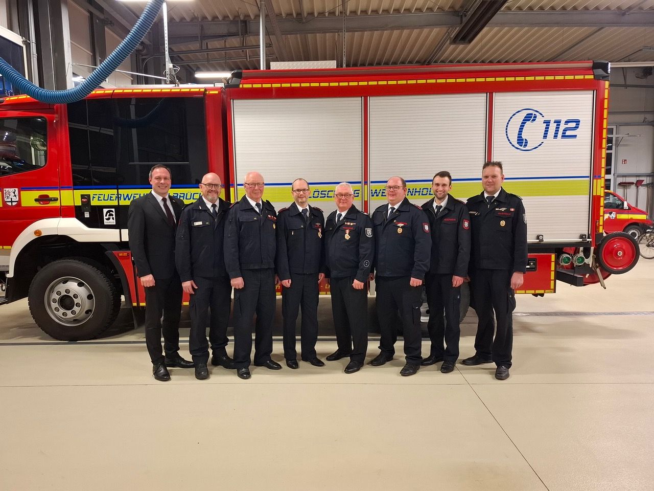 Ein emotionaler Moment folgte bei den Ehrungen: Markus Müller wurde auf eigenen Wunsch aus dem aktiven Dienst verabschiedet. Zugführer Brunnert würdigte seine 14-jährige Tätigkeit als Kassierer und seinen unermüdlichen Einsatz. Müller bleibt der Feuerwehr jedoch in der Unterstützungsabteilung erhalten. Außerdem wurde Franz Hagenbrock nach 46 Jahren aktiven Dienstes offiziell in die Ehrenabteilung übernommen. Für langjährige Mitgliedschaften erhielten Markus Müller das Feuerwehr-Ehrenzeichen in Silber (25 Jahre) und Hubert Beine das Ehrenzeichen in Gold (35 Jahre).