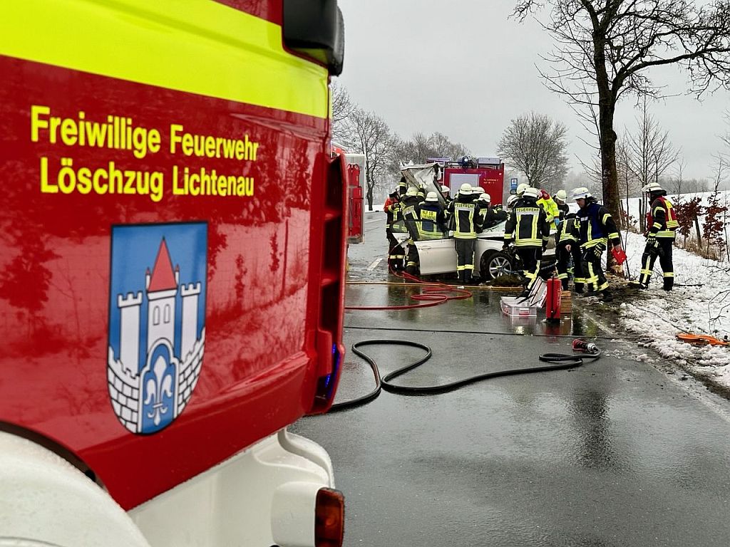 Bei einem schweren Verkehrsunfall auf der winterlichen Bundesstraße 68 bei Lichtenau ist am Donnerstagnachmittag ein Autofahrer schwer verletzt worden.