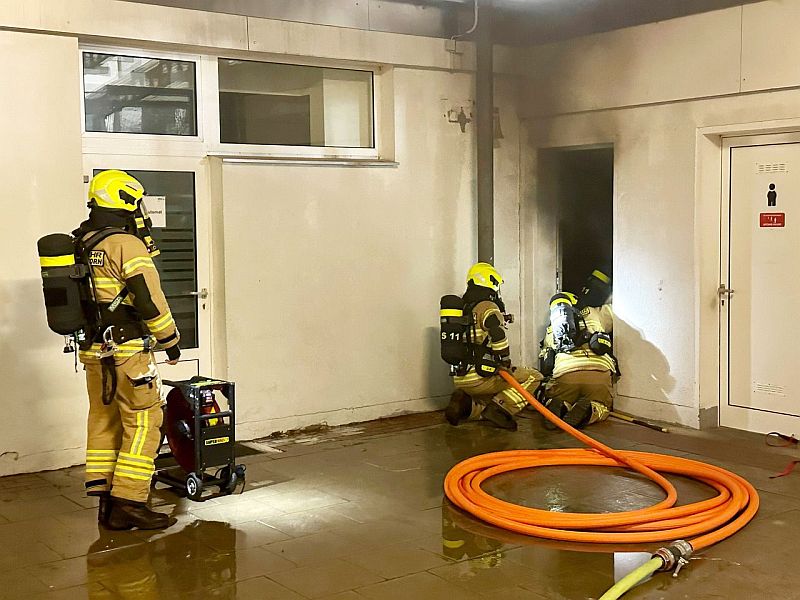 Schwarzer Rauch quillt aus der Mädchentoilette der Georgschule an der Erzbergerstraße. Um 17.36 Uhr am Mittwoch wird die Feuerwehr Paderborn alarmiert, die umgehend mit den beruflichen Kräften der Wachen und Süd sowie den Ehrenamtlichen aus der Kernstadt ins Riemekeviertel ausrückt.