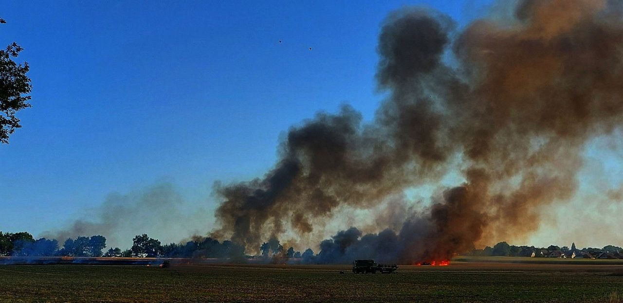 Zu einem ausgedehnten Vegetationsbrand rückten am Dienstagabend rund 70 Feuerwehrleute in den Stadtteil Westenholz aus. Dort standen gegen 19.30 Uhr abgemähte Getreidefelder in einer Größenordnung von rund 4.000 Quadratmetern in Brand. Auch ein Mähdrescher wurde ein Opfer der Flammen.