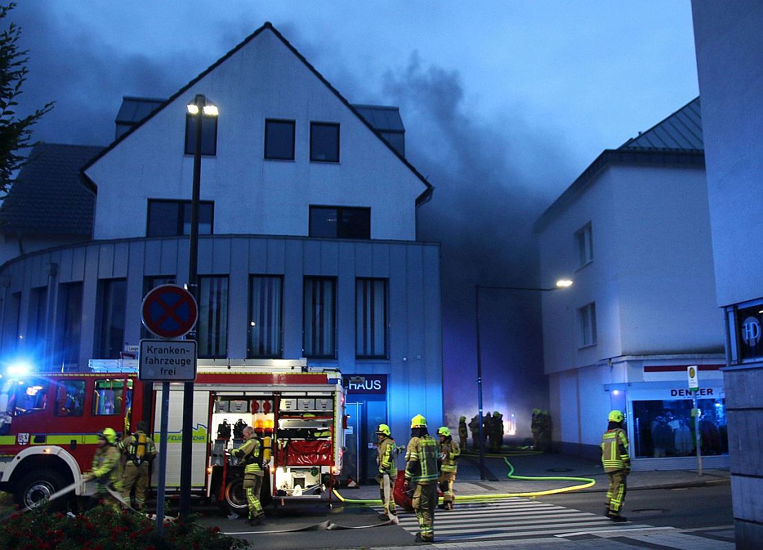 Feuerwehr rettet Bewohner eines Wohn- und Geschäftshauses in Delbrücks Innenstadt. Kellerbrand an der Langen Straße sorgt für enorme Rauchentwicklung.
