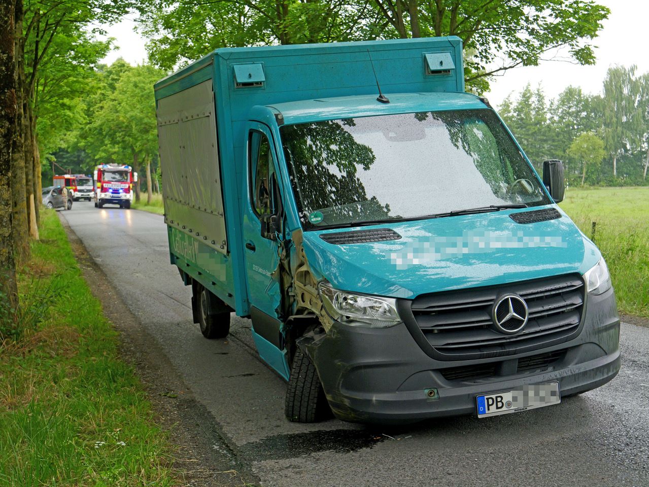 Durch einen medizinischen Notfall verlor der 58 Jahre alte Fahrer eines Mercedes-Kleintransporters am frühen Dienstagsnachmittag die Kontrolle über seinen Pritschenwagen, der daraufhin nach rechts von der Fahrbahn abkam und einen Straßenbaum streifte. Der Unfall ereignete sich gegen 13.35 Uhr auf der Straße Am Sporckhof im Delbrücker Stadtteil Schöning in Fahrtrichtung Bundesstraße 64.