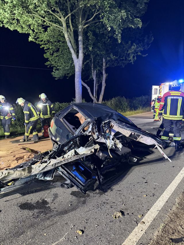 Wie durch ein Wunder hat ein 29 Jahre alter Autofahrer in der Nacht zu Samstag einen schweren Verkehrsunfall auf der Dörenhagener Straße, bei dem sein SAuto in zwei Teile zerrissen wurde, mit nur leichten Blessuren überlebt.