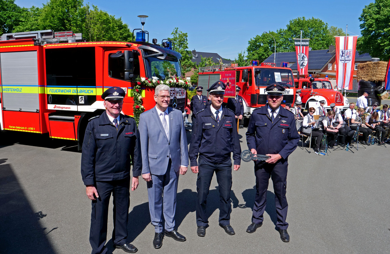 Der 60. Geburtstag des Löschzuges Westenholz bildete mit einem bunten Programm für die ganze Familie den Hintergrund für die Fahrzeugübergabe und Segnung vor dem Gerätehaus an der Westenholzer Straße.