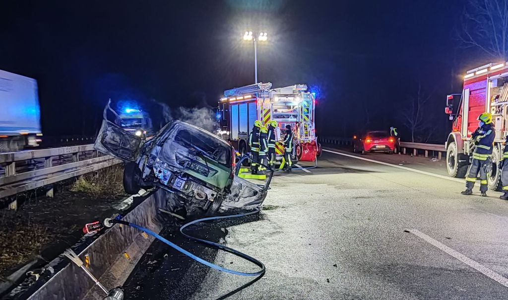 Bei einem schweren Verkehrsunfall auf der A 33 bei Hövelhof ist in der Nacht zu Mittwoch ein Insasse ums Leben gekommen. Zwei weitere schwer verletzte Insassen, darunter der Fahrer, wurden von couragierten Ersthelfern aus dem bereits in voller Ausdehnung brennenden Ford Fiesta gerettet und so vor dem sicheren Tod bewahrt. Die beiden Insassen erlitten schwere Verbrennungen.