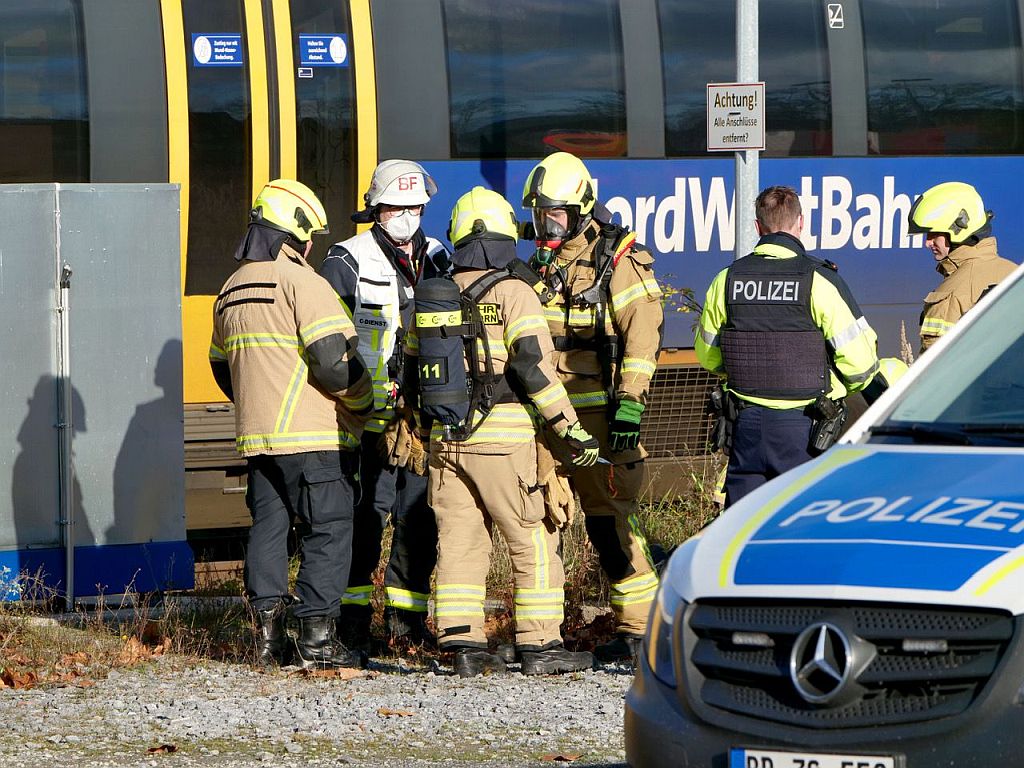 Auf dem Bahngelände an der Wollmarktstraße wurde bei Routinearbeiten in einem abgestellten Personenzug am Montagmittag eine unbekannte, möglicherweise gefährliche Substanz entdeckt.