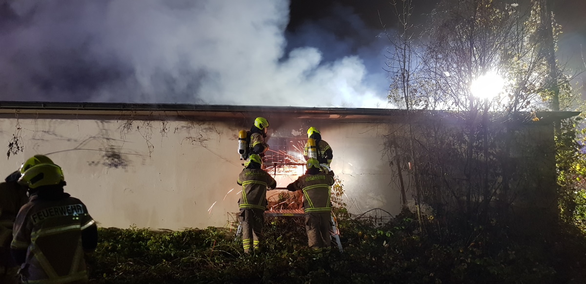Am Dienstag den 23.11.2021 wurde der Feuerwehr Paderborn um 20:46 Uhr ein Brand in einer ehemaligen Kegelbahn an der Wollmarktstraße in Paderborn gemeldet. Beim Eintreffen konnte sofort eine massive Verrauchung an der Vorderseite des Gebäudes festgestellt werden. Im hinteren Bereich wurden bei der näheren Erkundung bereits Flammen hinter einem Fenster erkannt. Über die Art und den Umfang der Nutzung des verlassenen Gebäudes lagen zunächst keine nähren Erkenntnisse vor. Ebenso war zunächst unklar, ob sich noch Personen im Gebäude aufhalten.