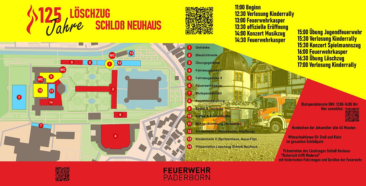 150 Jahre Freiwillige Feuerwehr Paderborn, 125 Jahre Feuerwehr in Schloß Neuhaus. Die Feuerwehr Paderborn begeht in diesem Jahr ihr 150-jähriges Jubiläum. Das kommende Wochenende bildet den Auftakt einer Reihe von besonderen Veranstaltungen, mit denen dieses Jubiläum feierlich begangen wird.