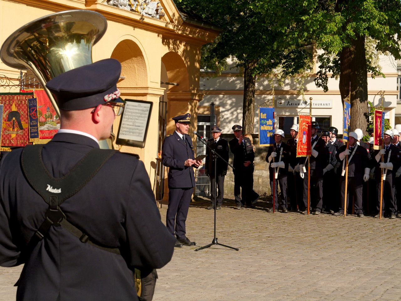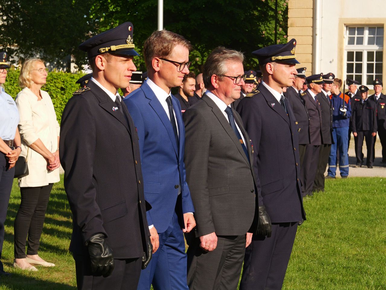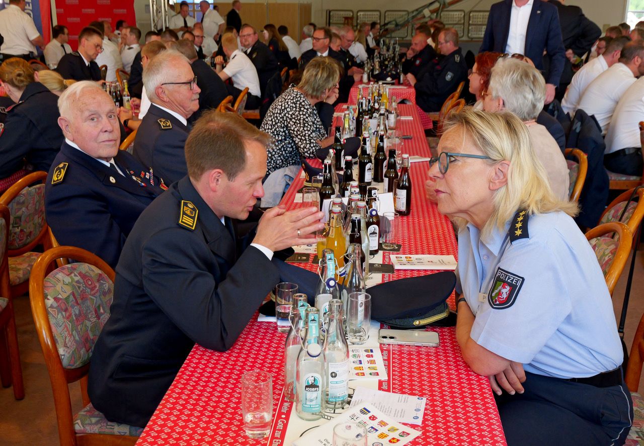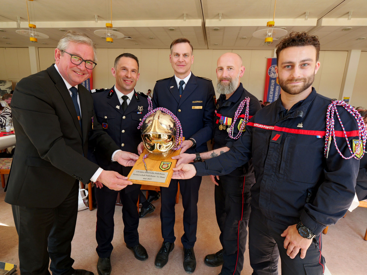 Rund 250 Delegierte und Gäste der Verbandsversammlung des Verbandes der Feuerwehr (VdF) im Kreis Paderborn gratulierten am Samstagnachmittag in der Schlosshalle im Neuhäuser Schlossgarten der Feuerwehr Paderborn zum 150-jährigen Bestehen.
