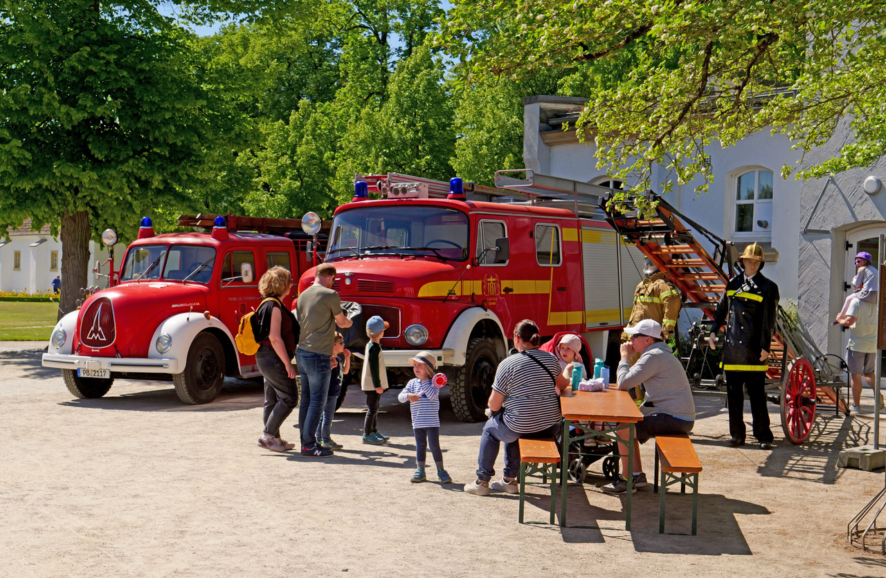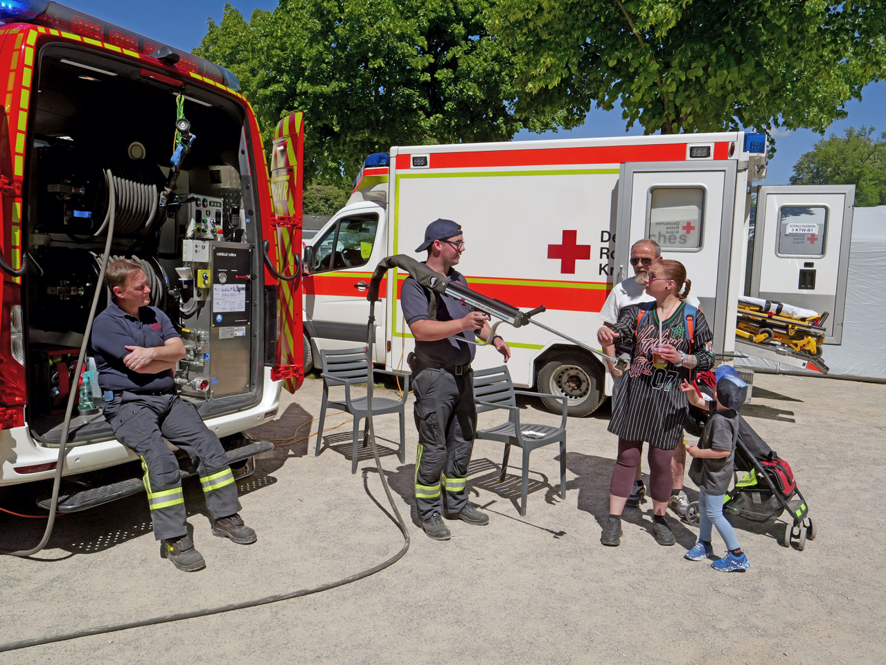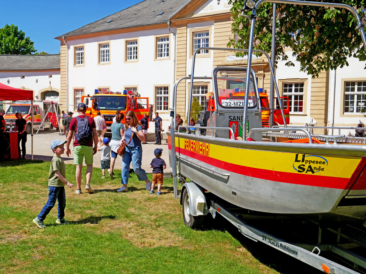 Benjamin Follert, Leiter des Löschzuges Schloß Neuhaus der Feuerwehr Paderborn, der am Sonntag mit einem Familientag das 125-jährige Bestehen feierte, war sprachlos. Bereits kurz nach der Eröffnung drängten sich die Besucher, darunter viele Kinder, auf der Blaulichtmeile zwischen den historischen Gartenbildern zwischen Schloss und er Schlosshalle. „Das Bild sagt doch alles“, meinte er, und plötzlich waren die wochenlangen Vorbereitungen der zahlreichen Helfer schlicht vergessen.