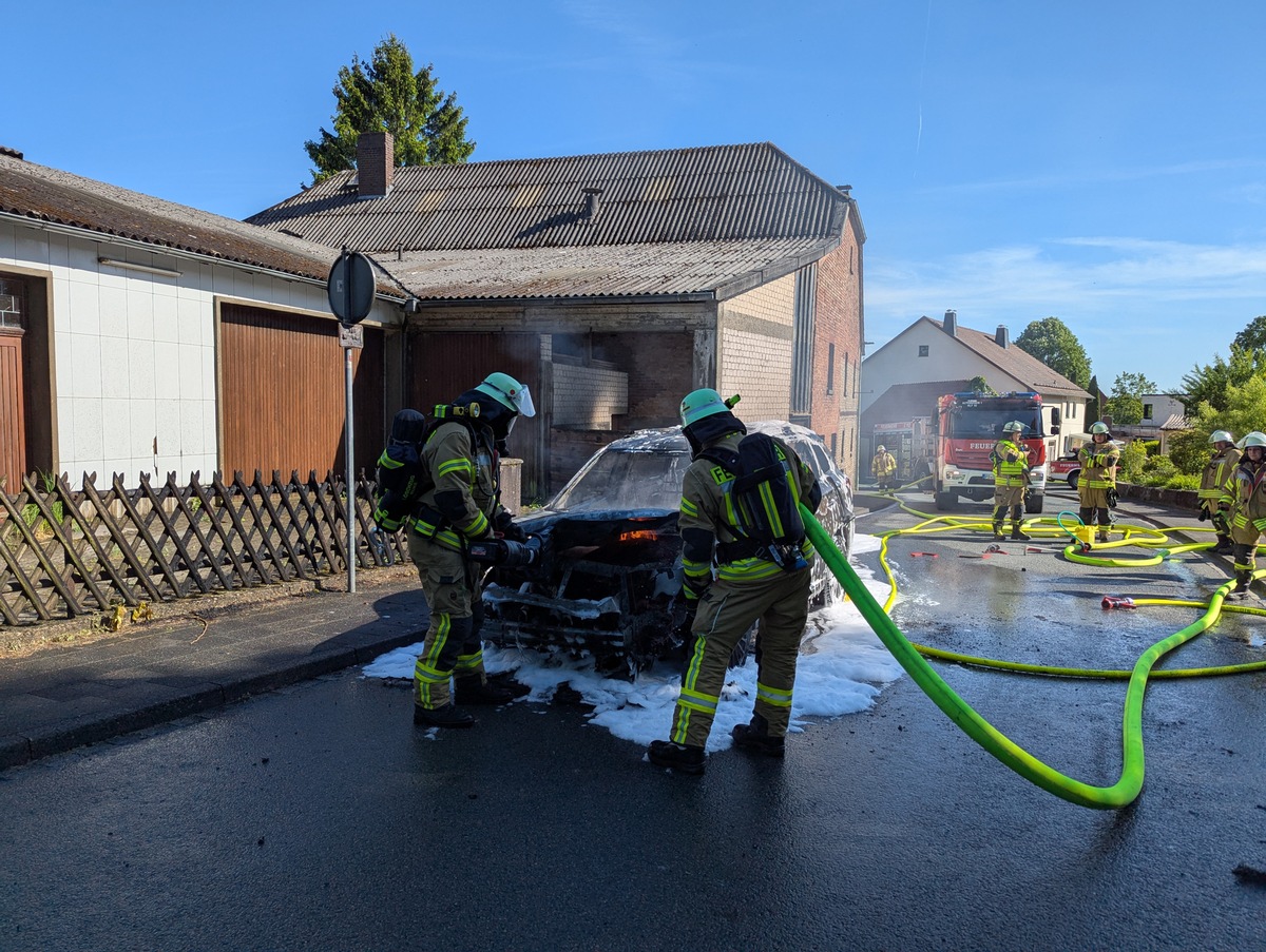 Auf dem Mühlenweg in Altenbeken-Buke hat am späten Mittwochnachmittag, 14. Mai, ein Auto gebrannt. Grund ist wahrscheinlich ein technischer Defekt.