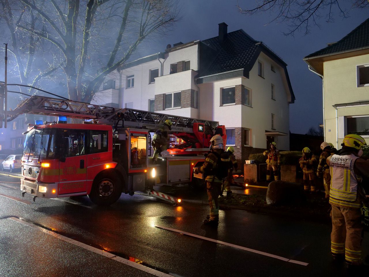 Dichte Rauchwolken über einem Mehrfamilienwohnhaus an der Riemekestraße wiesen den Einsatzkräften der Feuerwehr Paderborn am späten Dienstagnachmittag den Weg. Um 17.11 Uhr wurde die Feuerwehr durch die Leitstelle in Ahden zu einem Kaminbrand alarmiert.