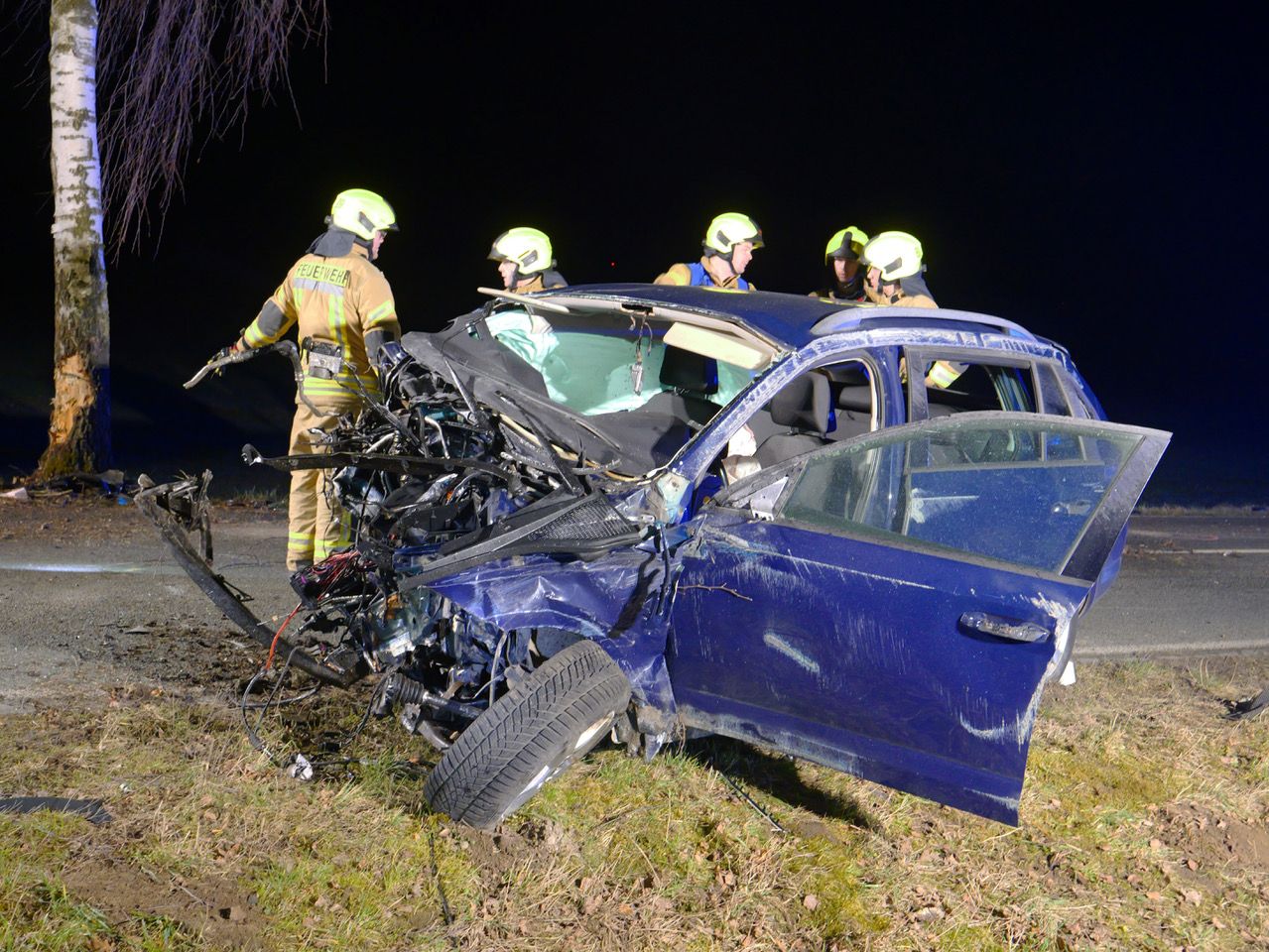 Schwer verletzt wurde am frühen Montagmorgen ein Autofahrer bei einem Verkehrsunfall, als sein Skoda Octavia auf dem Kreuzweg (L937) zunächst einen Baum streifte und dann frontal mit einem weiteren Baum kollidierte.