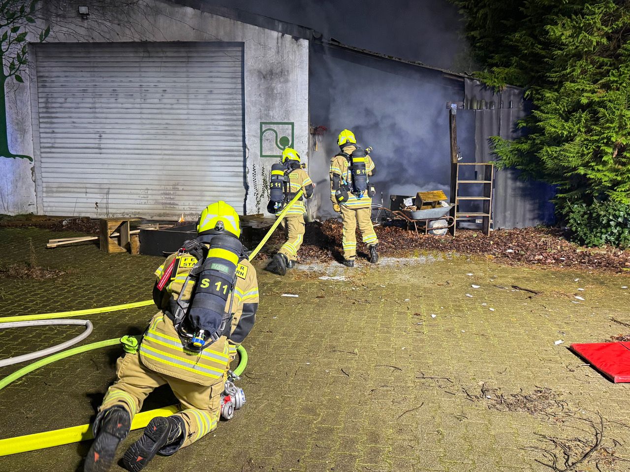 Zu einem gemeldeten Carport- oder Garagenbrand wurde die Feuerwehr Paderborn am frühen Donnerstagmorgen ins Riemekeviertel gerufen. Auf dem Gelände des ehemaligen Garten- und Landschaftsbaubetriebs Bunte an der Karl-Sonnenschein-Straße brannte eine Remise, die an eine 12 mal 14 Meter messende Lagerhalle angrenzte.
