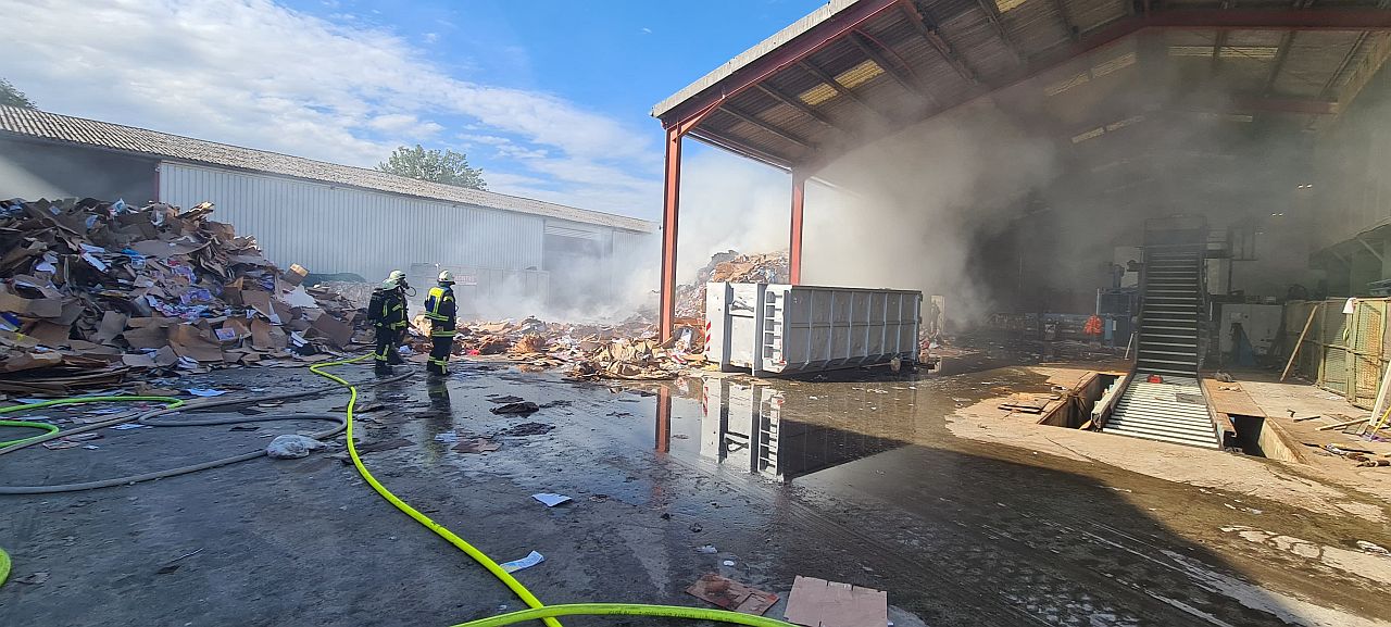 Brand auf dem Gelände eines Entsorgungsbetriebs. In Nordborchen ist am Donnerstag ein Feuer auf dem Gelände eines Recyclinghofes ausgebrochen.