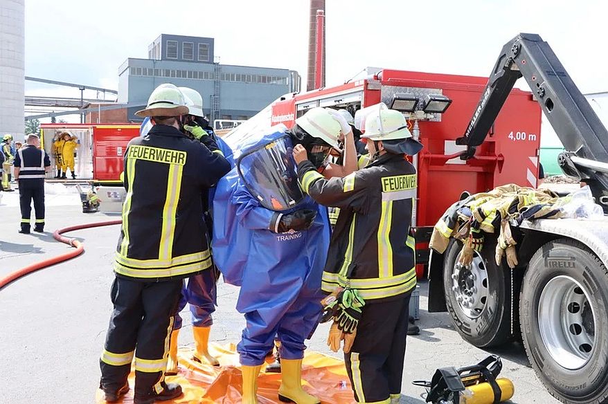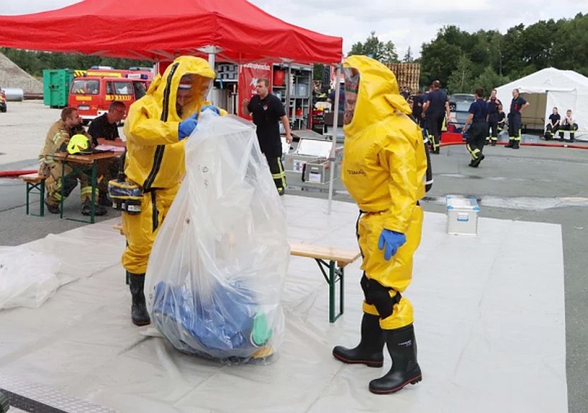 Großübung in Hövelhof: 113 Feuerwehrleute im Einsatz. Neue ABC-Schutzkonzepte auf Herz und Nieren überprüft. Zahlreiche Feuerwehrautos und 113 Feuerwehrleute aus dem gesamten Kreis Paderborn waren am Samstag in Hövelhof im Einsatz.