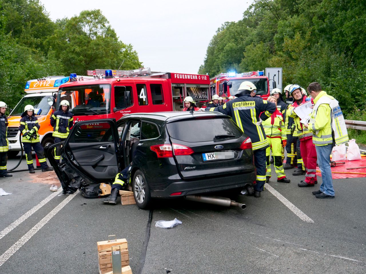 Zu einem Verkehrsunfall mit mehreren eingeklemmten Personen wurden die Einsatzkräfte des Löschzuges Haaren, der Rettungsdienst und die Autobahnpolizei am Montag um 09.25 Uhr auf die BAB 44 alarmiert. Aufgrund der Lagemeldung entsandte die Leitstelle zusätzliche Feuerwehrleute aus Helmern, Fürstenberg und Bad Wünnenberg.