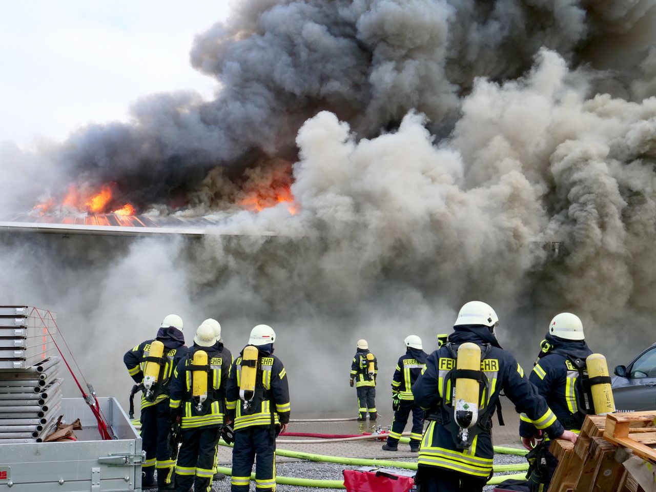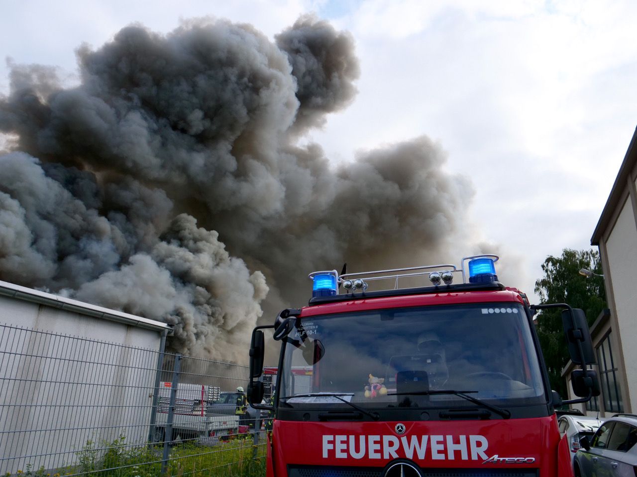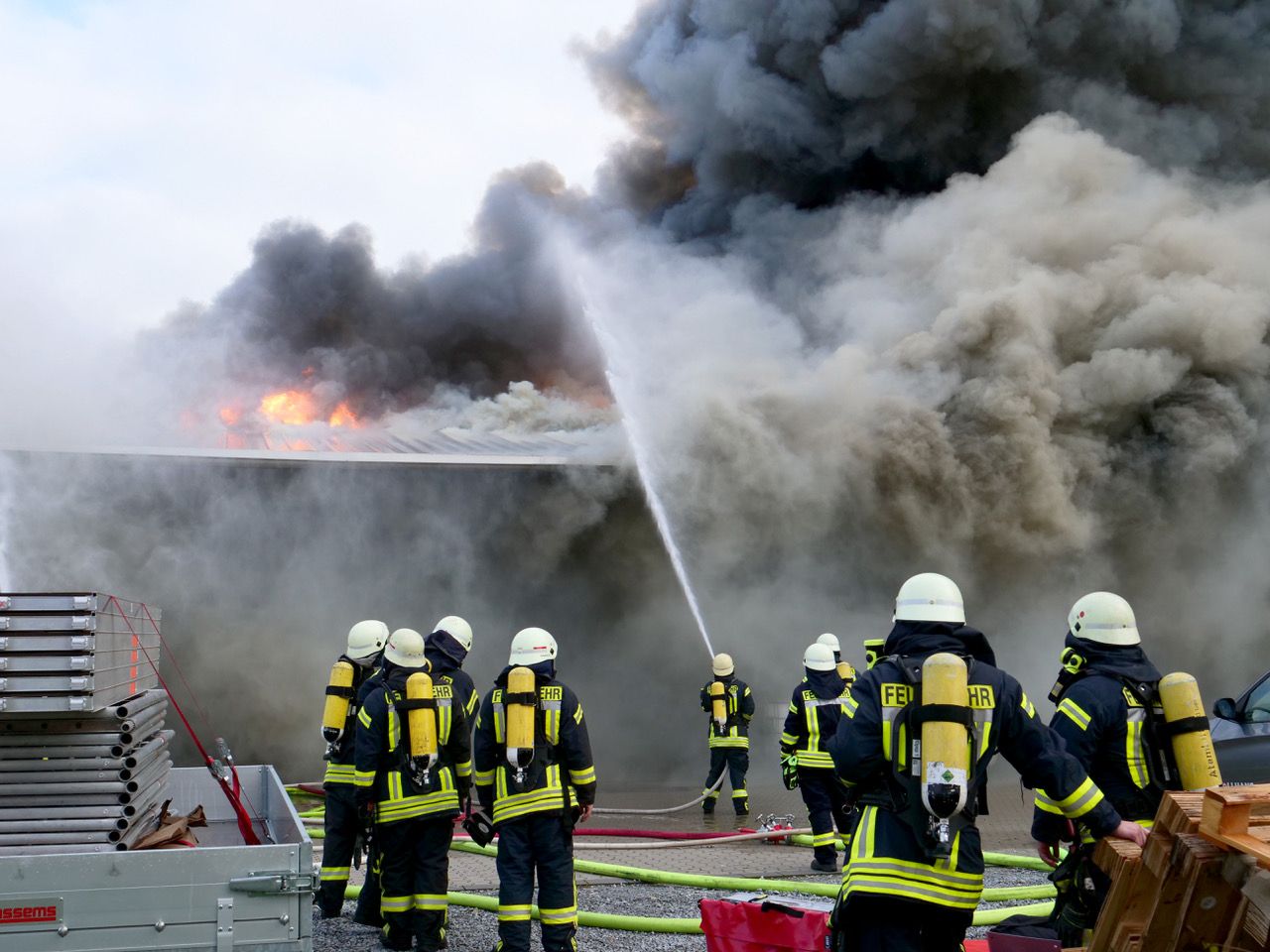 Mehr als 200 Feuerwehrleute aus Salzkotten, Büren, Delbrück und Paderborn waren am Freitag bei einem Großbrand im Gewerbegebiet Berglar in der Nähe der Bahnstrecke Paderborn-Hamm im Einsatz. Eine 1.200 Quadratmeter große Gewerbehalle in Mischnutzung wurde von den Flammen zerstört, berichtet Tobias Rupprecht, Leiter der Feuerwehr Salzkotten. Eine mehrere hundert Meter hohe Rauchwolke stand über dem Gewerbegebiet und zog mit dem Wind nordostwärts. Nach rund zweieinhalb Stunden waren die Flammen gelöscht, die Nachlöscharbeiten zogen sich aber noch bis in den späten Nachmittag hin.