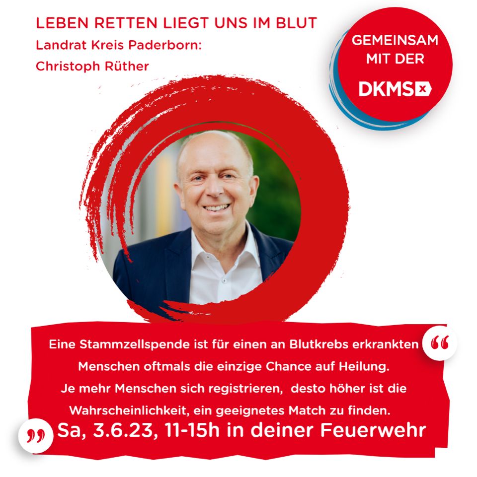 Alle 27 Sekunden erhält weltweit ein Mensch die Diagnose Blutkrebs. Viele dieser Patientinnen und Patienten können ohne eine lebensrettende Stammzellspende nicht überleben. Deshalb zählt jede einzelne Registrierung – auch deine! Setze zum diesjährigen World Blood Cancer Day (WBCD) ein Zeichen: Teile diesen Beitrag, komm am 3. Juni in deine Feuerwehr in Ostwestfalen-Lippe und registriere dich als potenzieller Stammzellspender.
