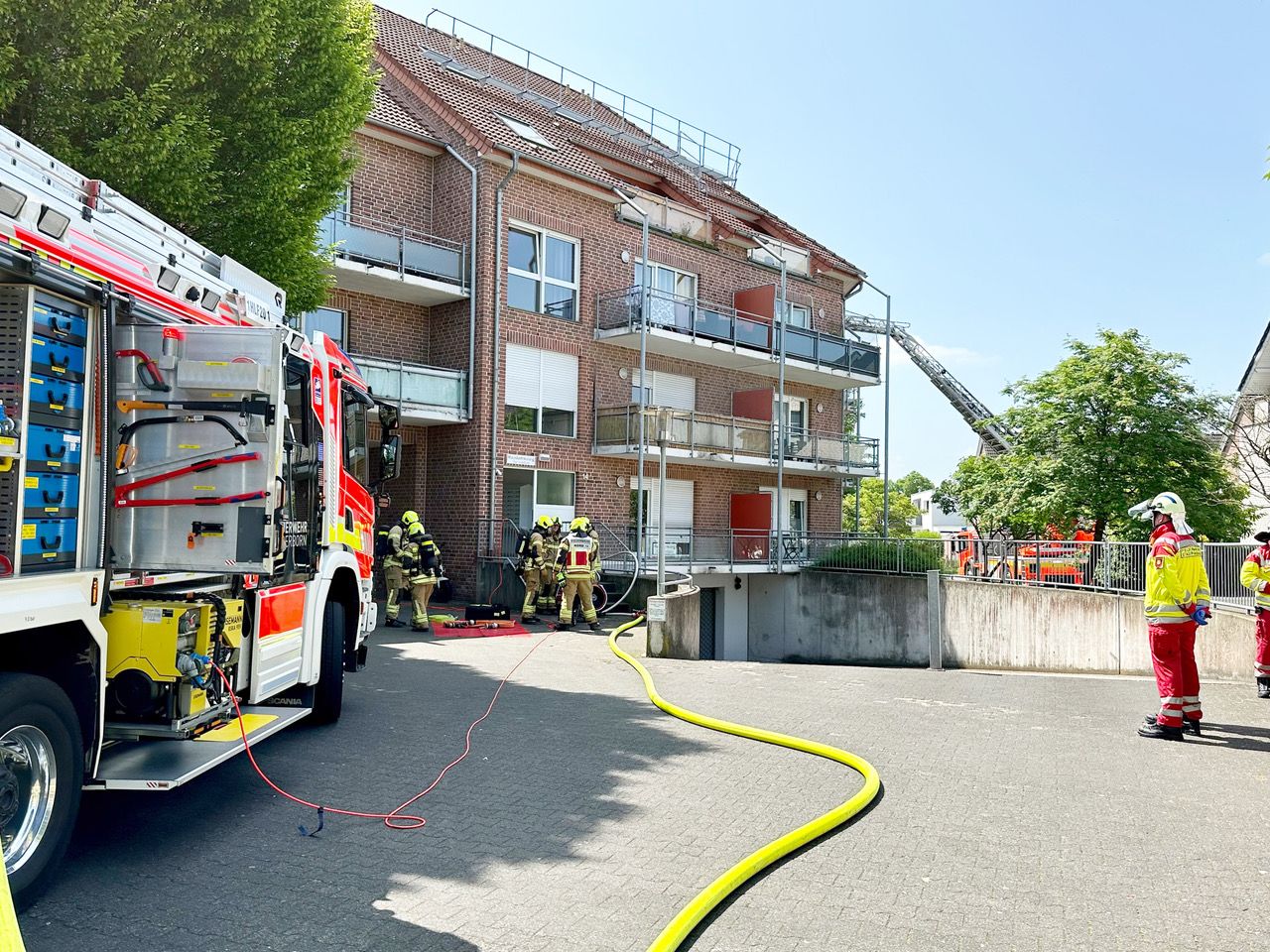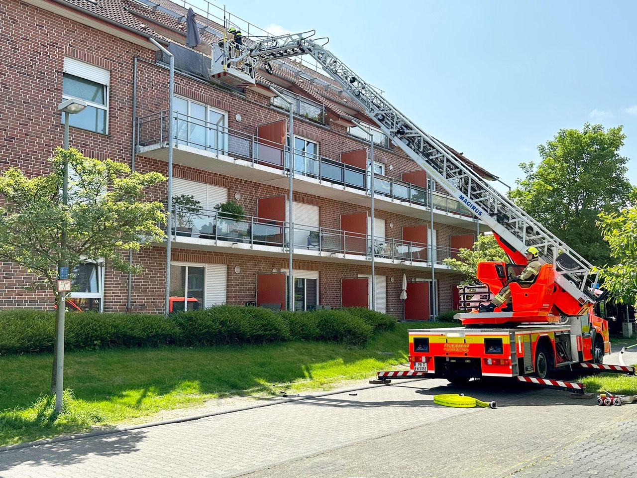 In den Mittagstunden wurde die Feuerwehr Paderborn zu einem Wohnungsbrand im Paderborner Norden alarmiert. Rund 45 Einsatzkräfte rückten zur Horner Straße aus. Dort stand im dritten Obergeschoss eines Mehrfamilienhauses eine Küche in Flammen. Mehrere Hausbewohner waren auf den piependen Rauchmelder und eine Rauchentwicklung aufmerksam geworden und hatten die Feuerwehr alarmiert.