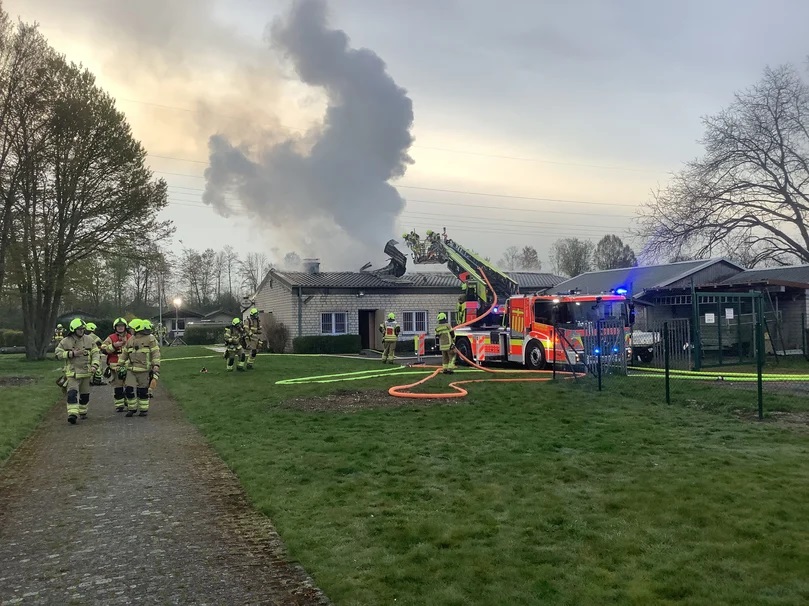 Brand im Vereinsheim der Kleingartenanlage Riemeke. Feuerwehr Paderborn mit etwa 70 Personen im Einsatz.