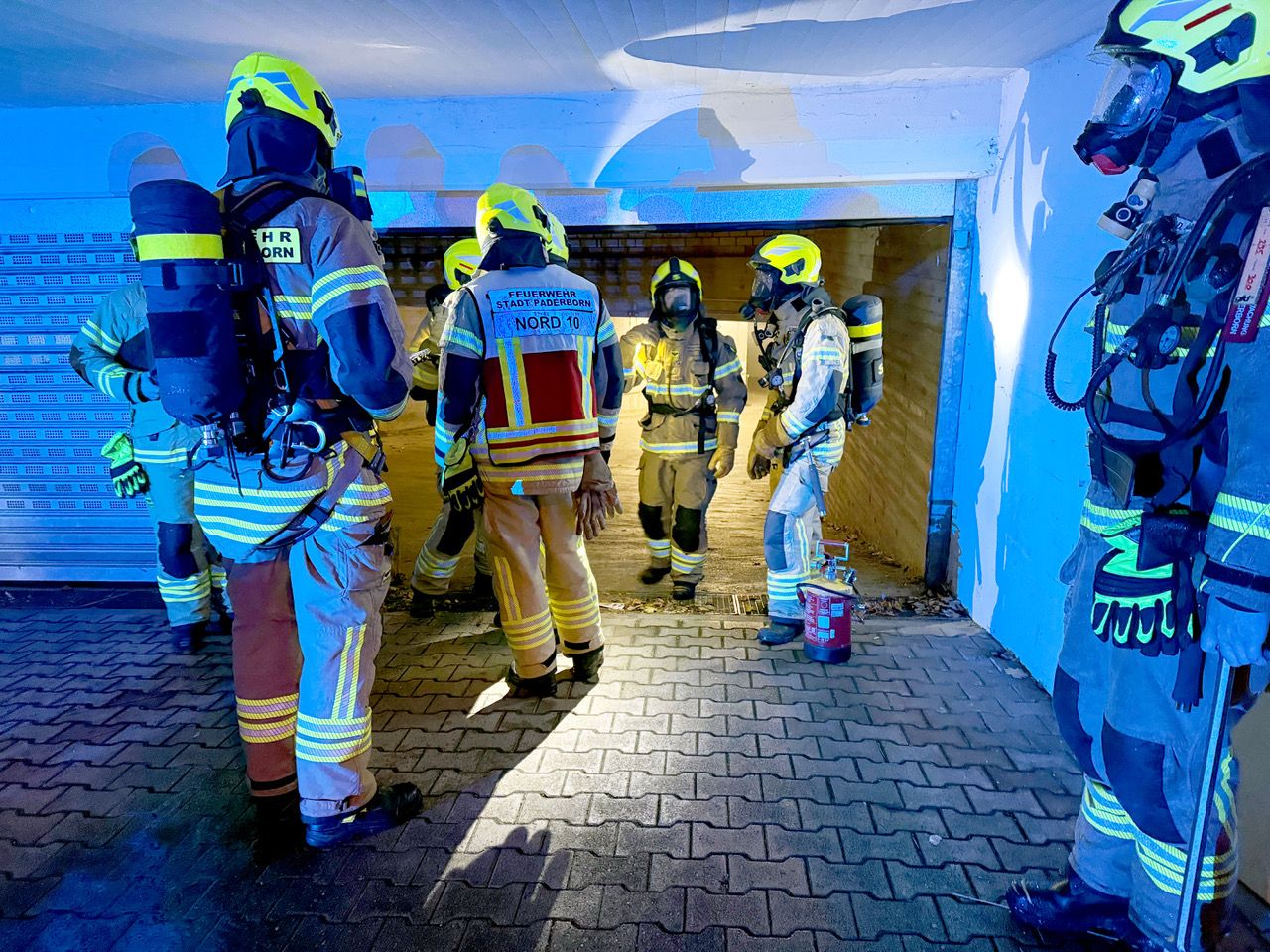 Zum Brand in der Großgarage Güldenpfennigweg im Bereich der Einfahrt zur Tiefgarage an der Straße Im Lichtenfelde rückte die Feuerwehr Paderborn am frühen Sonntgmorgen aus. Um 4.53 Uhr alarmierte die Leitstelle des Kreises nach Notrufen wegen starker Rauchentwicklung unter dem Stichwort „Kellerbrand“ die Feuerwehr Paderborn.